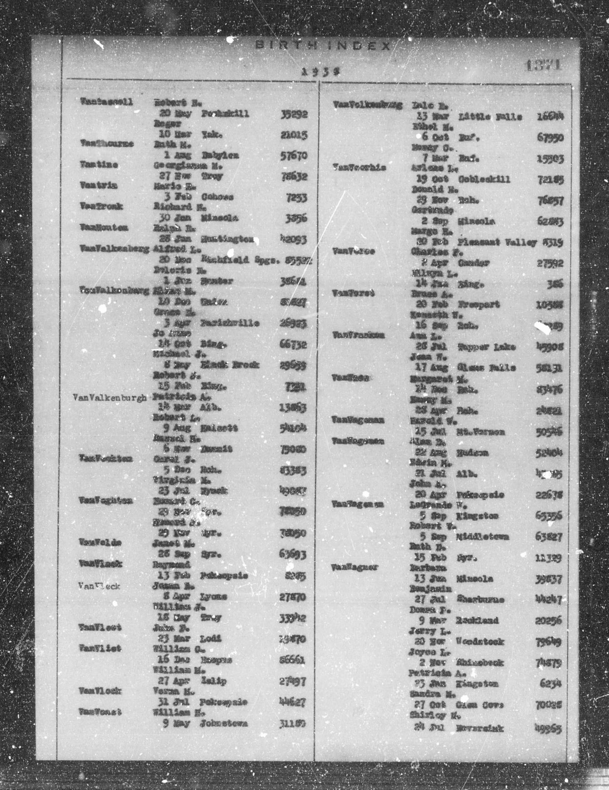 Nancy Vanvolkenburg birth 17 Mar 1938 |