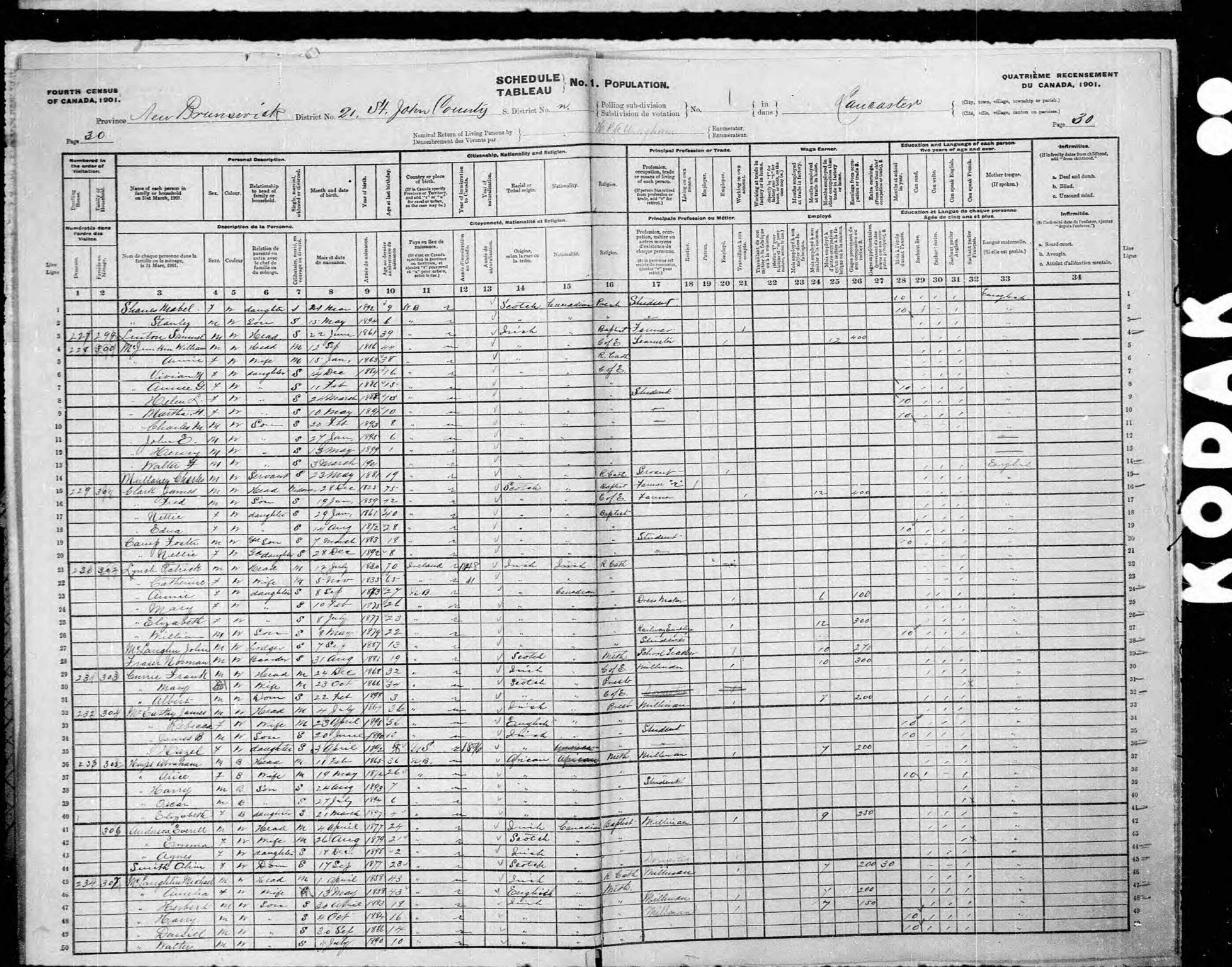 Year: 1901; Census Place: Lancaster, Saint John (County/Comtรฉ), New Brunswick; Page: 30; Family No: 304 |