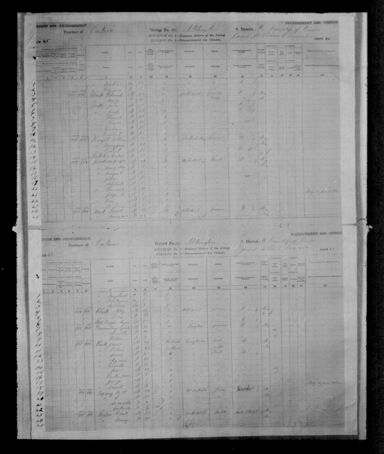 Year: 1881; Census Place: Kennebec, Addington, Ontario; Roll: C_13237; Page: 46; Family No: 188 |