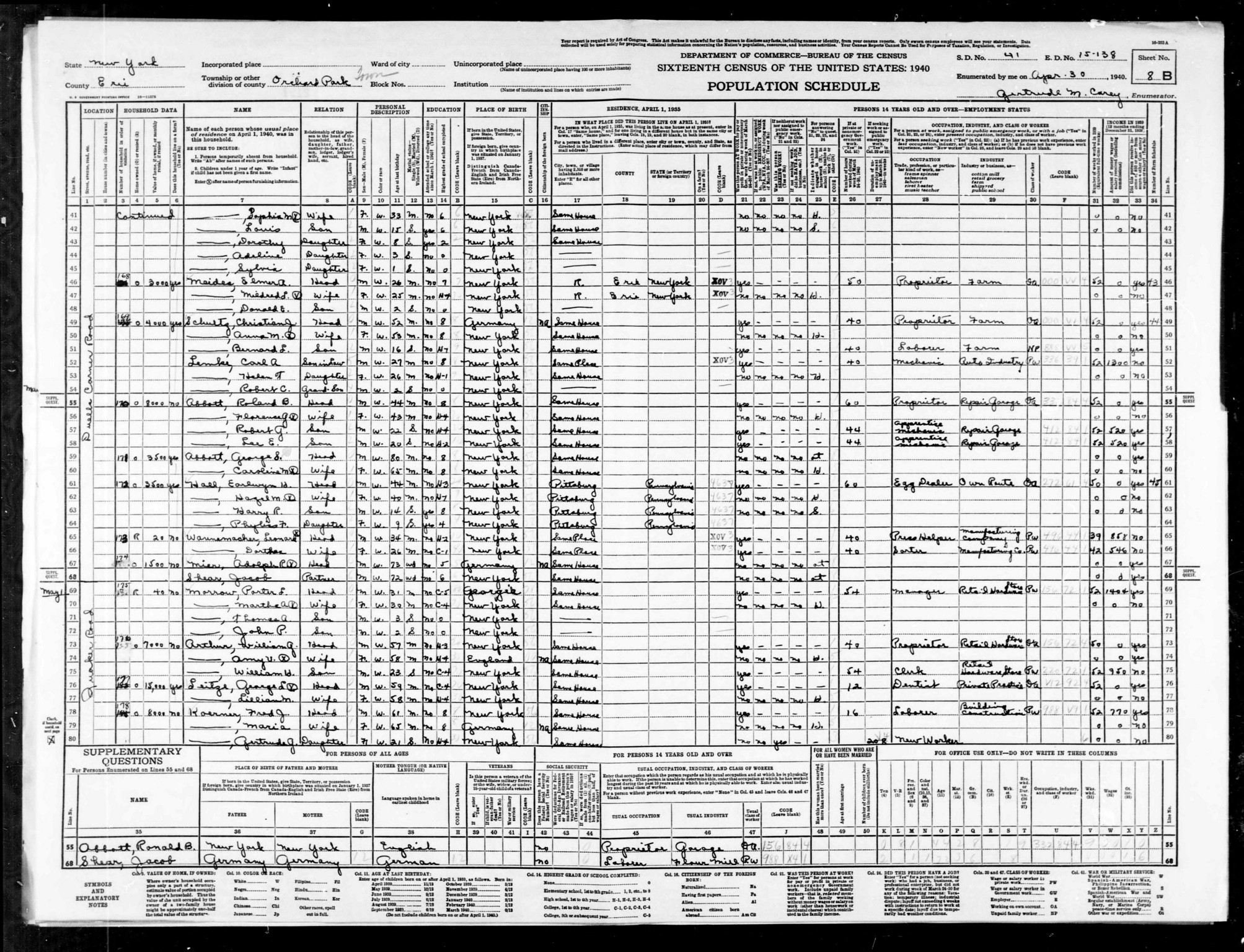 Year: 1940; Census Place: Orchard Park, Erie, New York; Roll: m-t0627-02530; Page: 8B; Enumeration District: 15-138 |