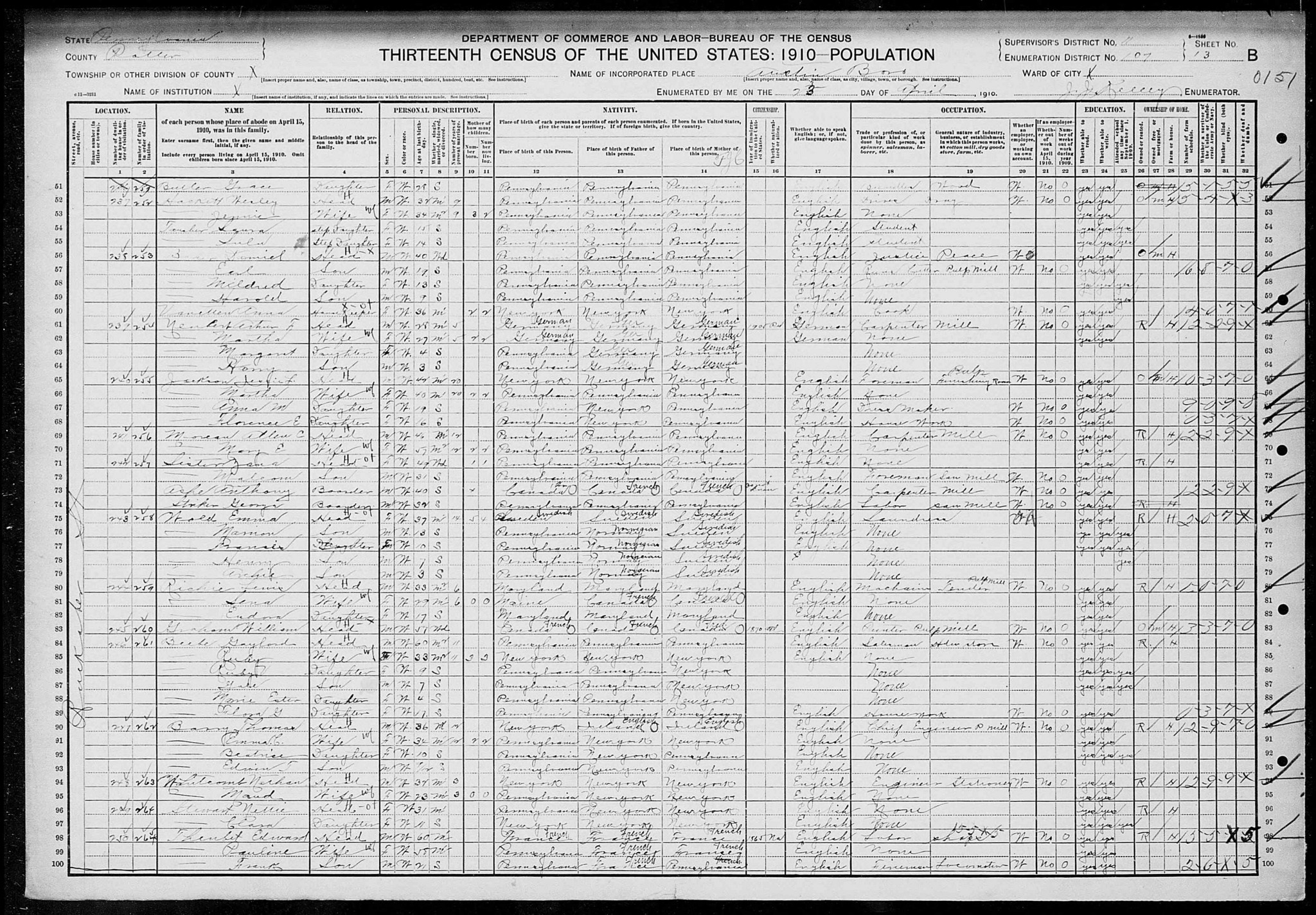Year: 1910; Census Place: Austin, Potter, Pennsylvania; Roll: T624_1415; Page: 13B; Enumeration District: 0107; FHL microfilm: 1375428 |