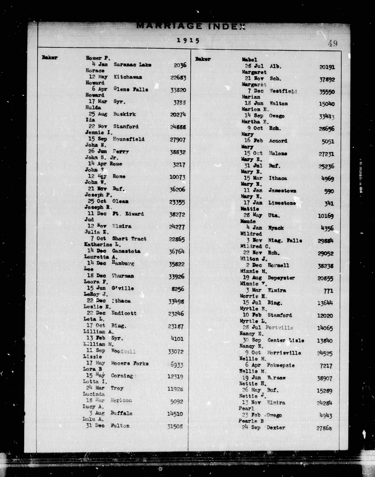 New York State Department of Health; Albany, NY, USA; New York State Marriage Index |