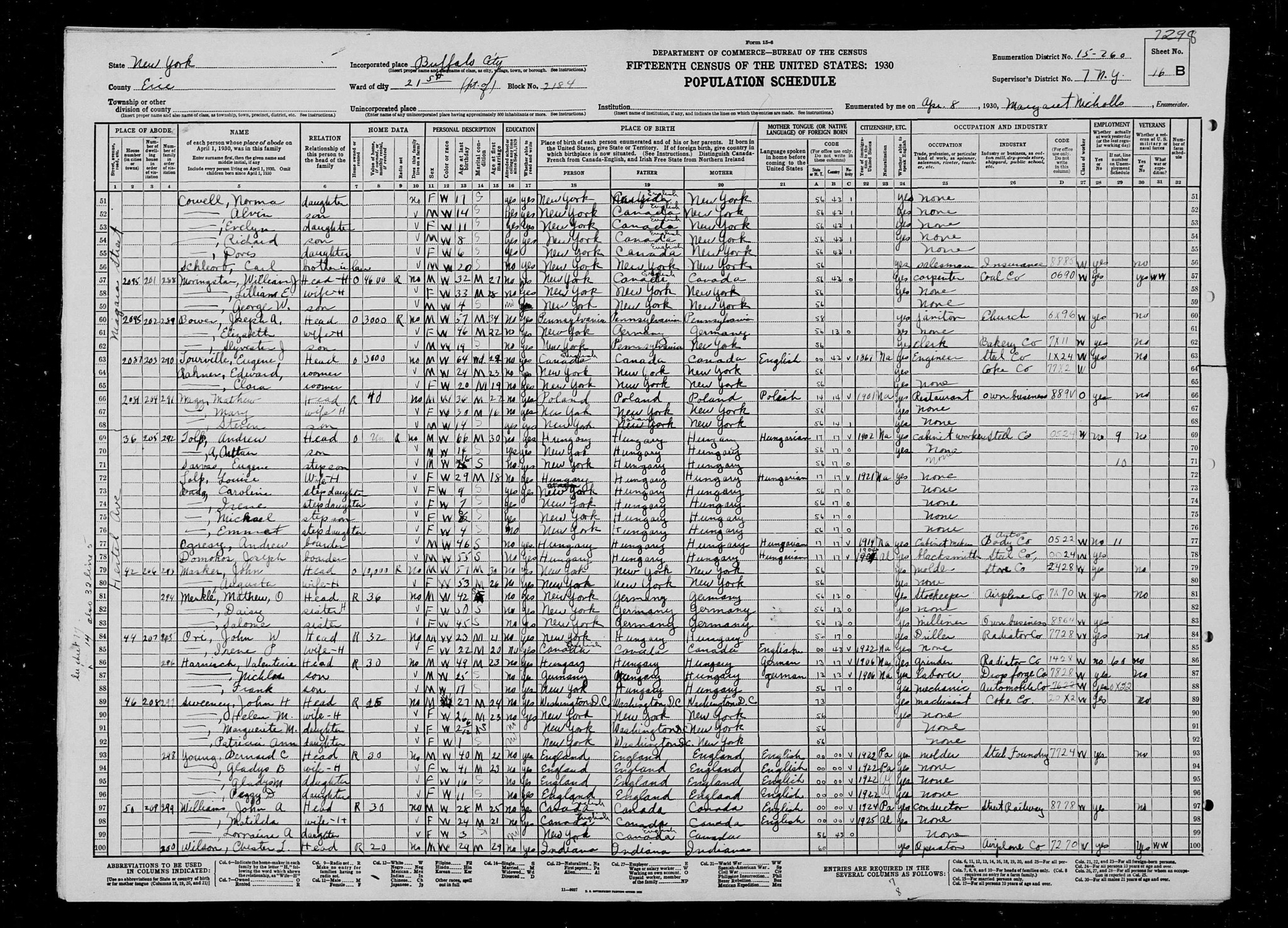Year: 1930; Census Place: Buffalo, Erie, New York; Page: 16B; Enumeration District: 0260; FHL microfilm: 2341165 |