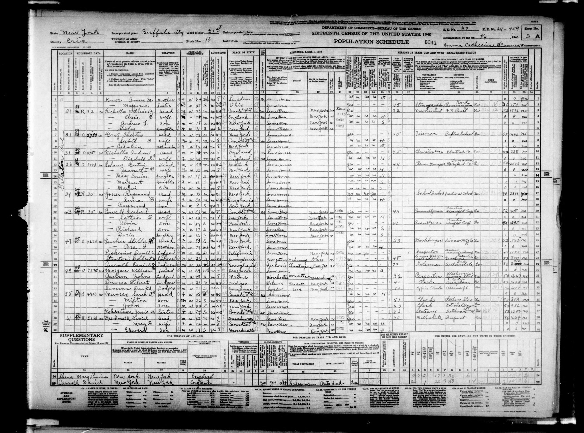Year: 1940; Census Place: Buffalo, Erie, New York; Roll: m-t0627-02837; Page: 3A; Enumeration District: 64-459 |