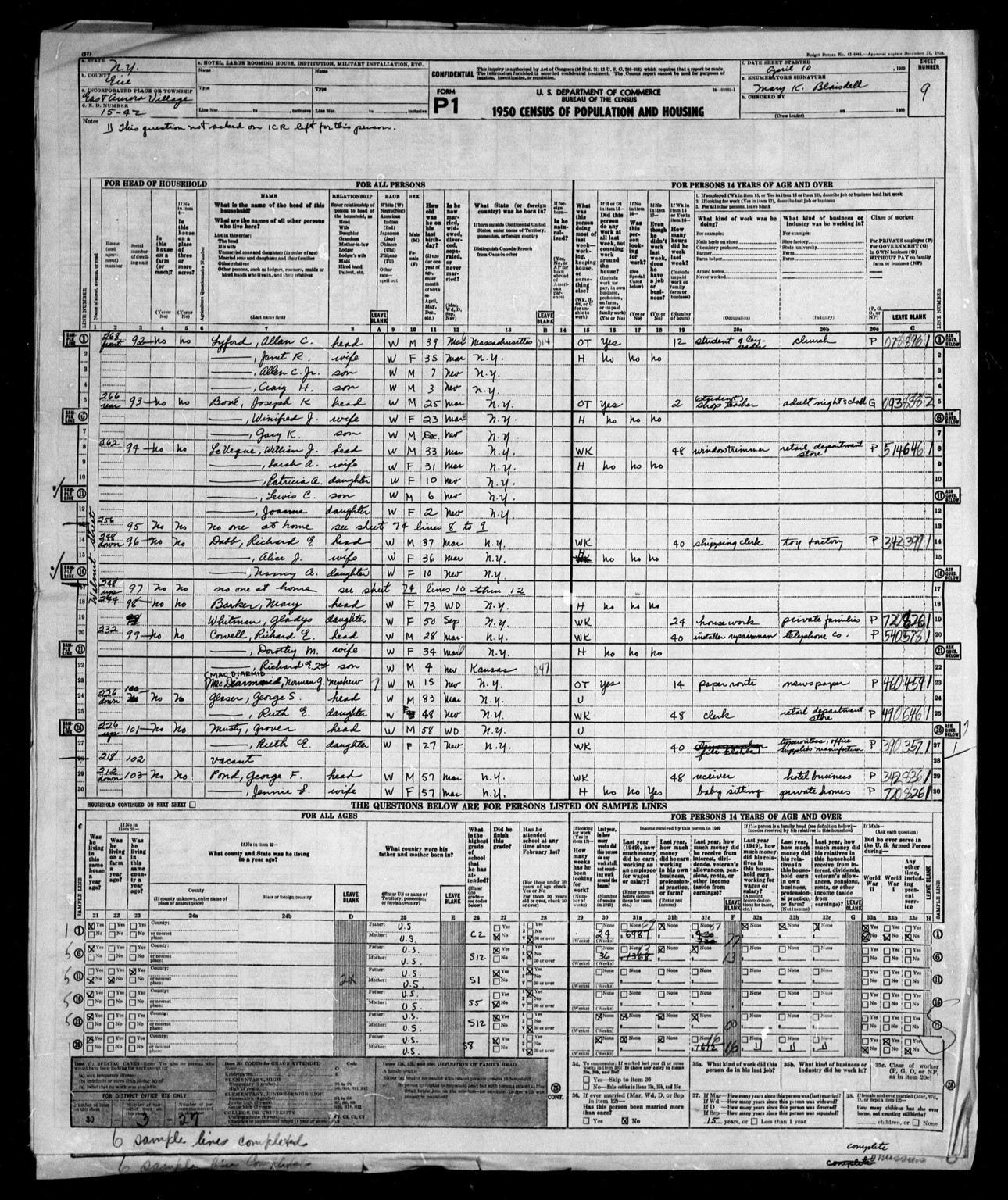City: Concord; State: North Carolina; Year(s): 1995-1997 United States of America, Bureau of the Census; Washington, D.C.; Seventeenth Census of the United States, 1950; Record Group: Records of the Bureau of the Census, 1790-2007; Record Group Number: 29; Residence Date: 1950; Home in 1950: East Aurora, Erie, N Year: 1940; Census Place: Buffalo, Erie, New York; Roll: m-t0627-02837; Page: 3A; Enumeration District: 64-459 |