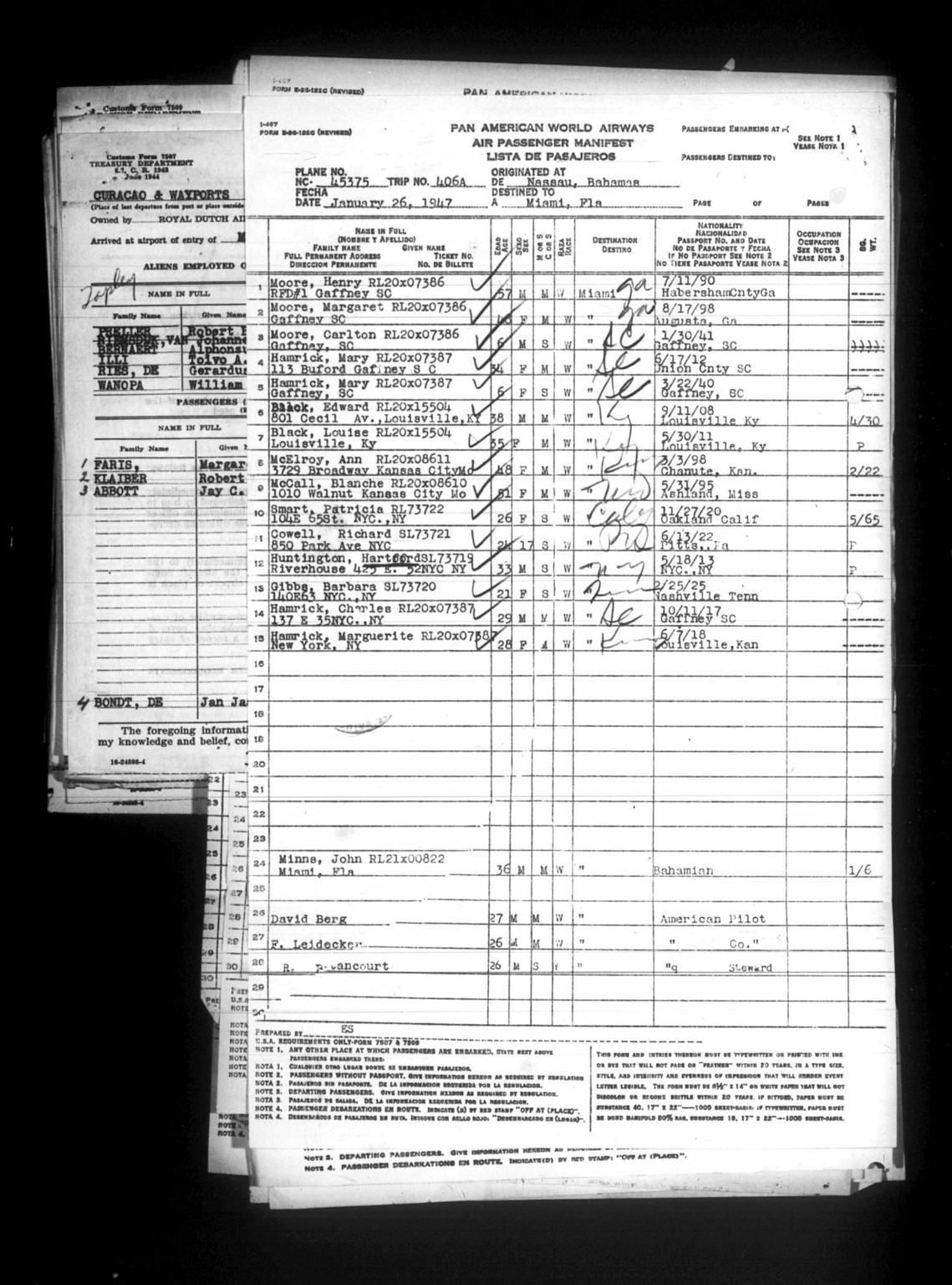 The National Archives At Washington, D.c.; Washington, D.c.; Series Title: Passenger Manifests of Airplanes Arriving At Miami, Florida; NAI Number: A3993; Record Group Title: Records of the Immigration and Naturalization Service, 1787 - 2004; Record Group |