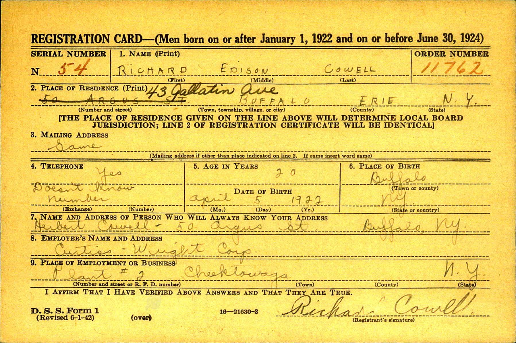 National Archives at St. Louis; St. Louis, Missouri; WWII Draft Registration Cards for New York State, 10/16/1940 - 03/31/1947; Record Group: Records of the Selective Service System, 147 |