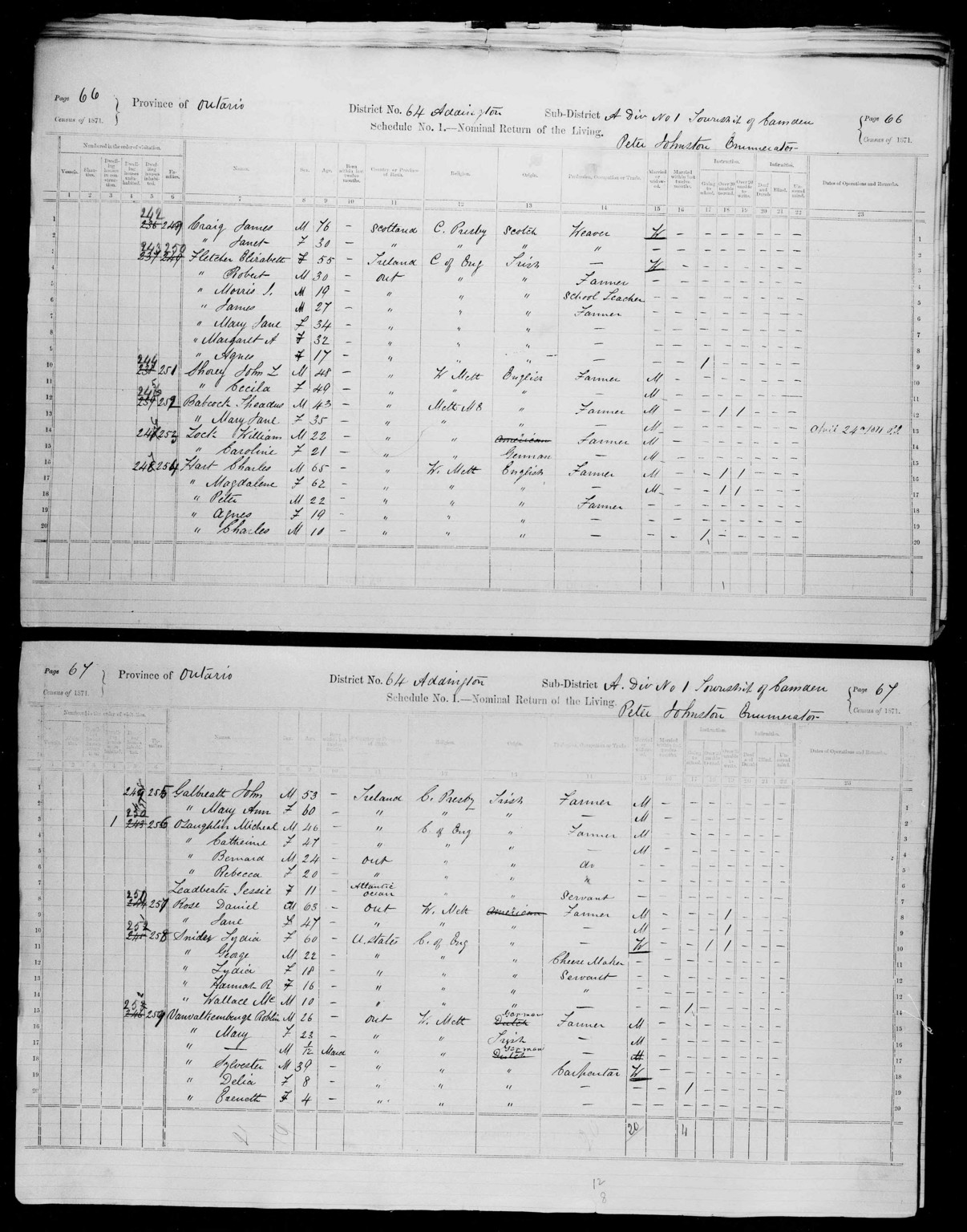 Year: 1871; Census Place: Camden, Addington, Ontario; Roll: C-9996; Page: 67 |