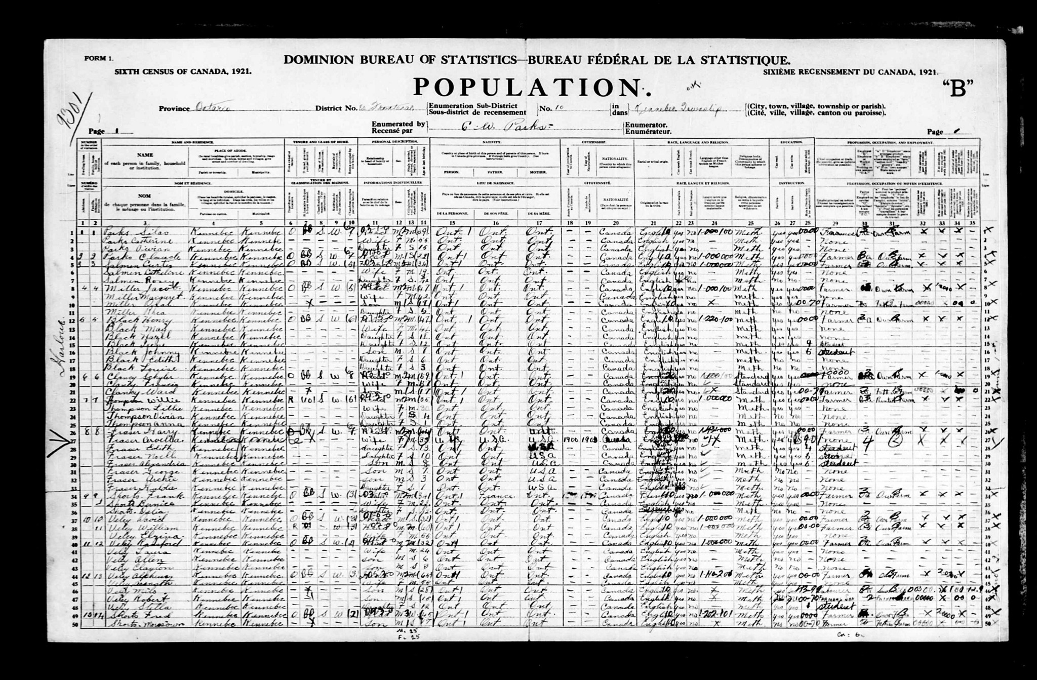 Reference Number: RG 31; Folder Number: 58; Census Place: 58, Frontenac, Ontario; Page Number: 1 |