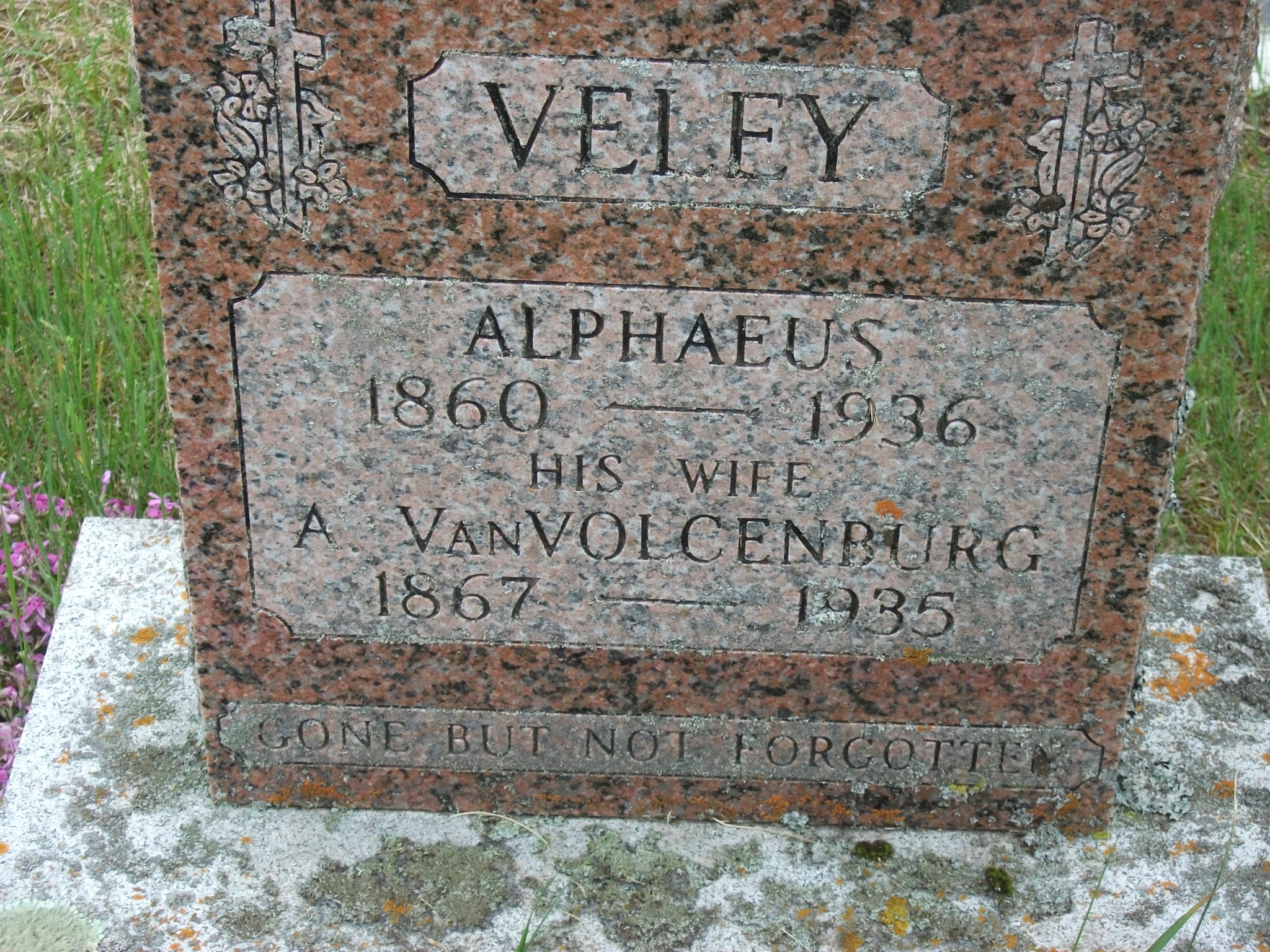 | Husband | Alphaeus Veley , b. 15 SEP 1857, Ontario, Canada, d. 1936 (Age 168 years) |