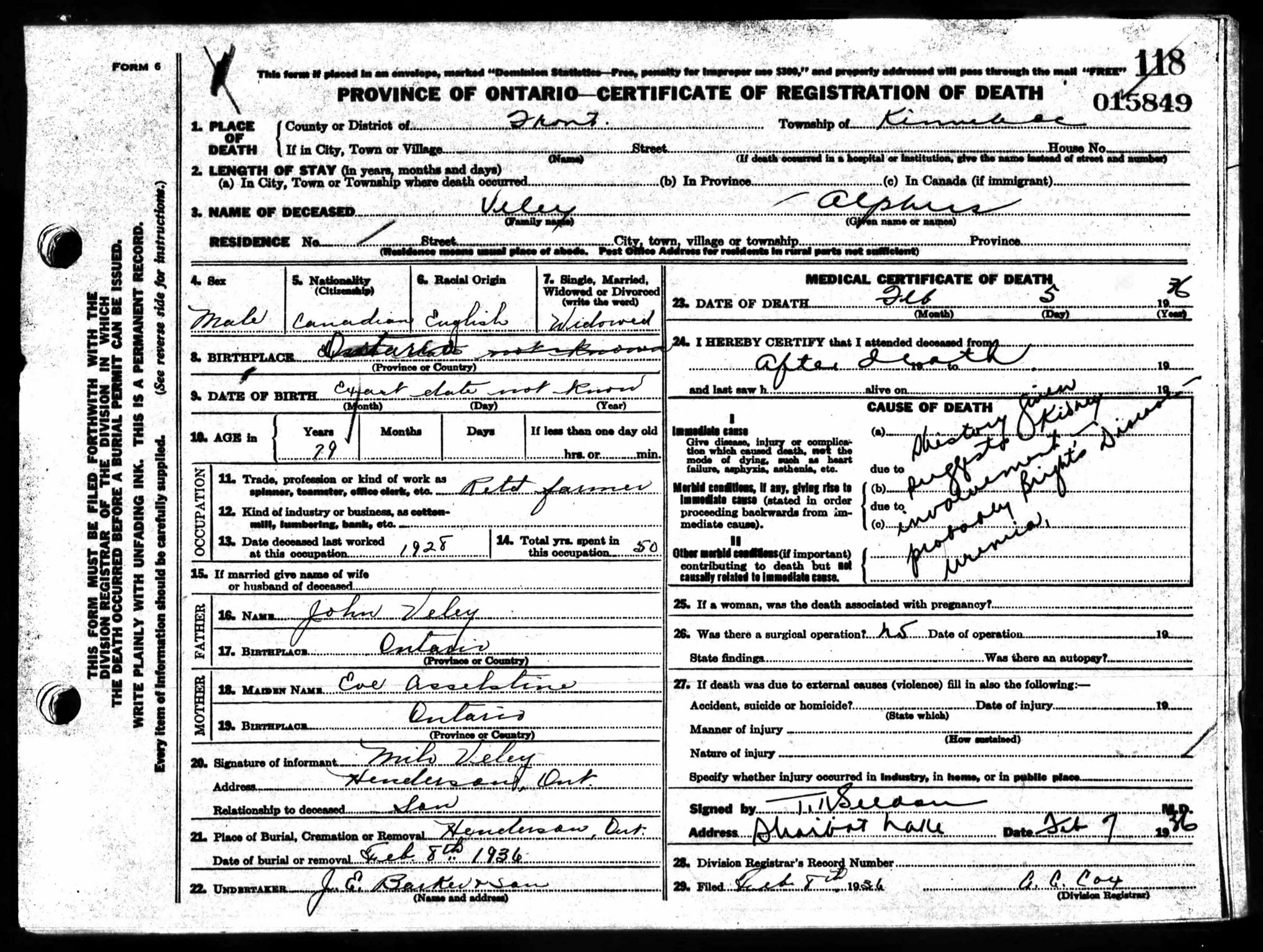 | Wife | Asenath Van Volkenburg , b. 5 NOV 1867, Ontario, Canada, d. 21 MAR 1935, Frontenac, Ontario, Canada (Age 67 years) |