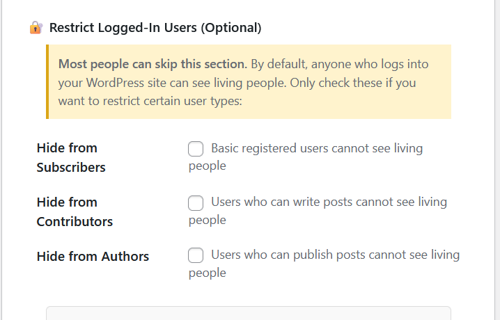 4. Hide living from contributors: false