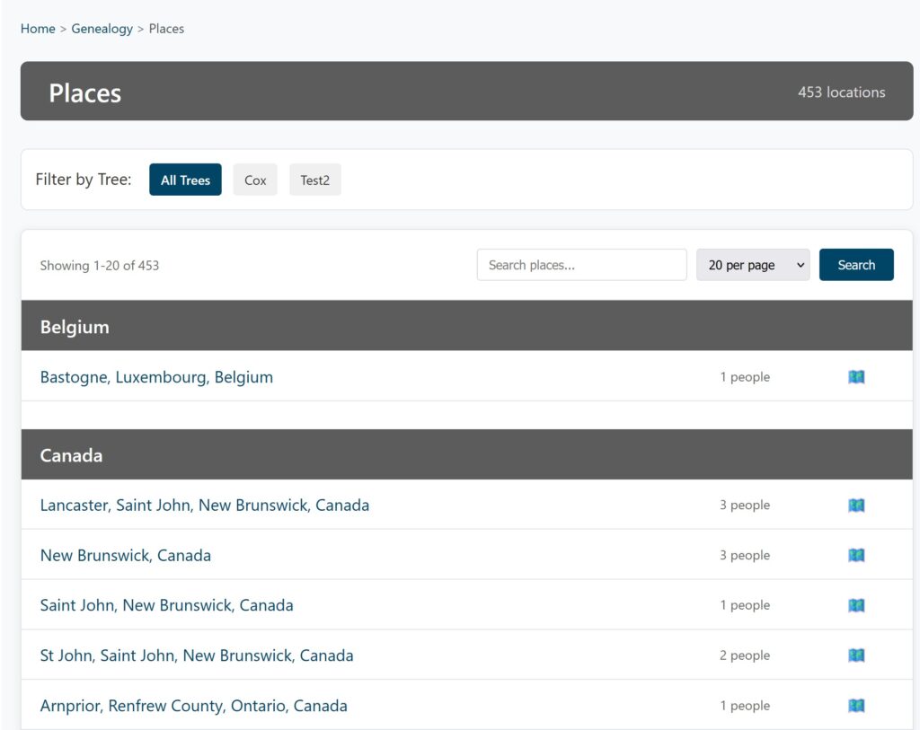 $$\text{How to Access: } \text{yoursite.com/genealogy/places/} \text{ or via the Genealogy Hub link.}$$